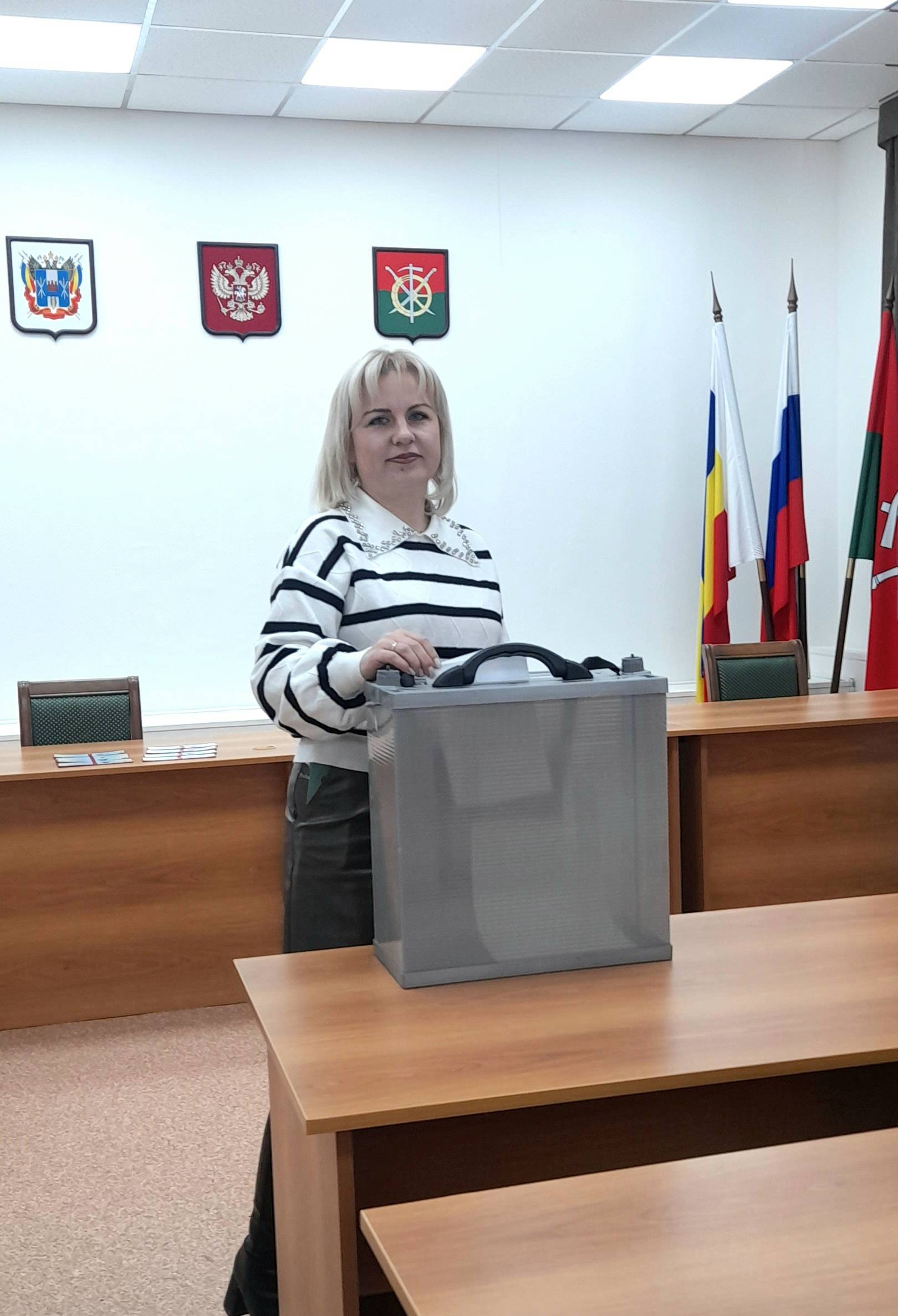 Провели тайное голосование, в результате которого были избраны заместитель председателя комиссии– Бондарева Юлия Михайловна и секретарь комиссии - Алексеева Елена Александровна. Председатель Территориальной избирательной комиссии Каменского района Валерий Чеботарев вручил удостоверения членам комиссии.
