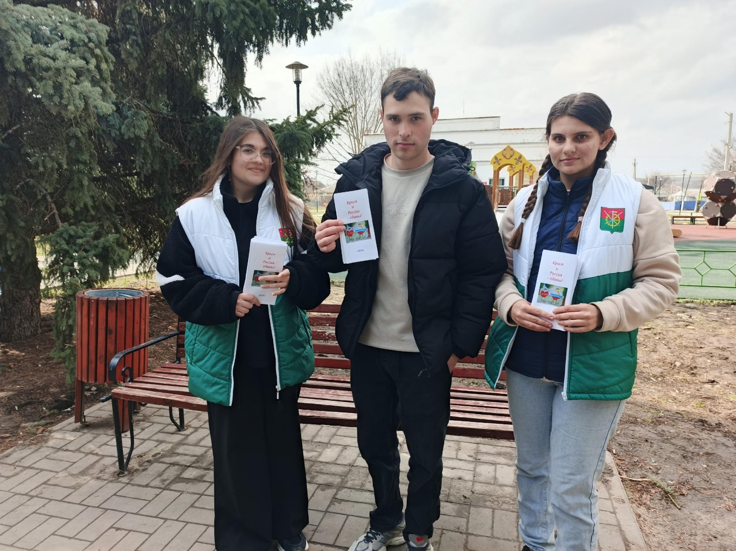 18.03.2026Специалисты районного Дома культуры, волонтёры клуба молодого избирателя «Выбор России провели акцию «Крым и Россия-вместе!».